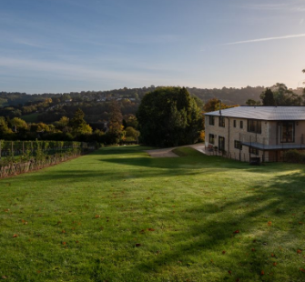 Woodchester Valley House is a contemporary, architect-designed Cotswold home set within the private grounds of our vineyard estate. Designed with space, light and connection to nature in mind, the house sleeps up to 12 guests in six generously sized bedrooms — four with ensuites — and enjoys uninterrupted views across the vines and the rolling valley.